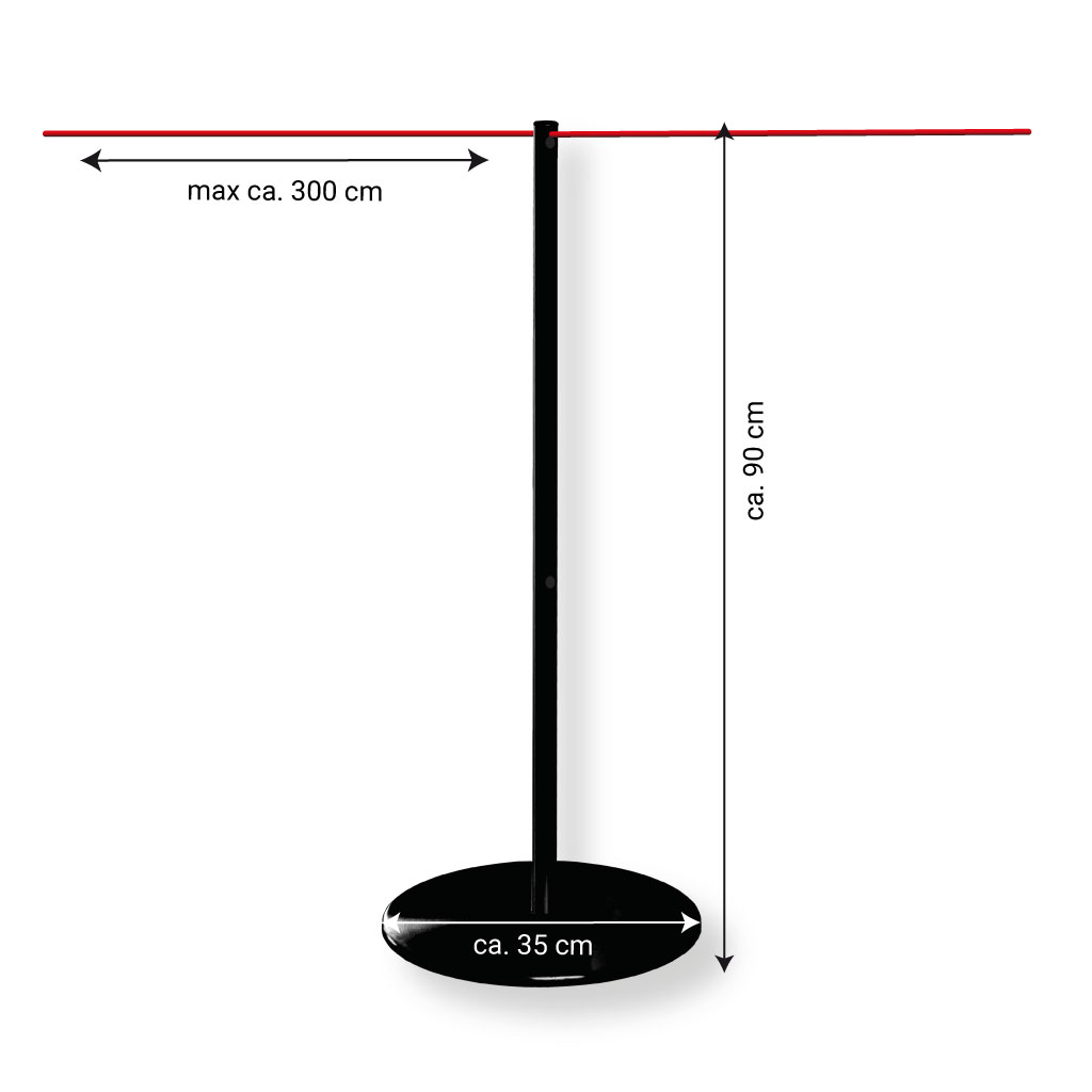 De museum afzetpaal model “expo-liner” wordt gebruikt in combinatie met een elastisch koord. Totaal weegt deze zwarte paal ca. 7 kg, de voet is voorzien van een vloerbeschermer. Zeer eenvoudig kan de paal op de voet gemonteerd worden. De hoogte van dit type expoisitie paaltje is ca. 90 cm. Lees hier meer over onze museumpaaltjes!